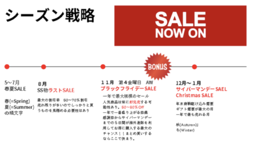 特にブラックフライデーは年間を通して一番安く買えるイベントになりますので積極的に在庫にして販売戦略を取ることをお勧めいたします。現地買付/セレクトショップ/アウトレット/国内店舗全てが対象。